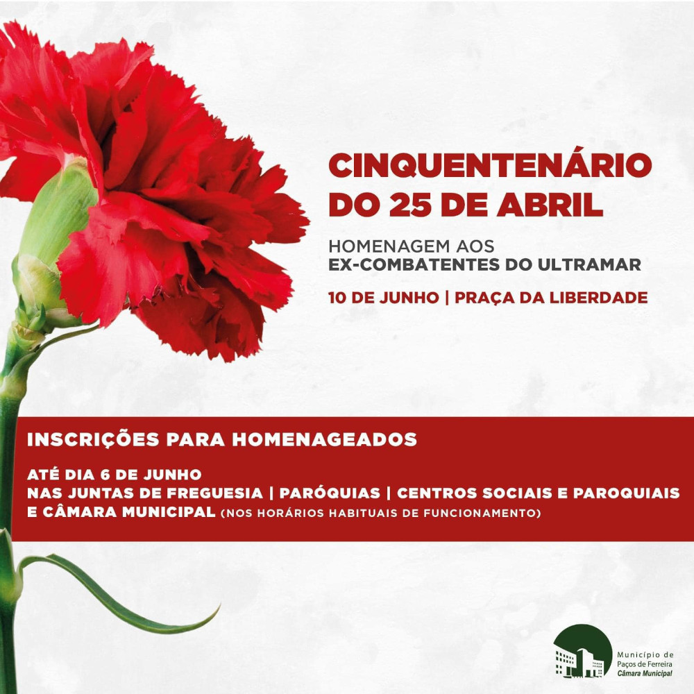 Os Ex-Combatentes da nossa Cidade que queiram participar nesta homenagem, deverão inscrever-se na Câmara Municipal, na Junta de Freguesia, ou no Centro social e Paroquial de Freamunde.